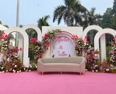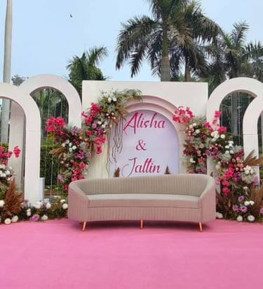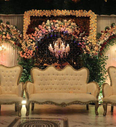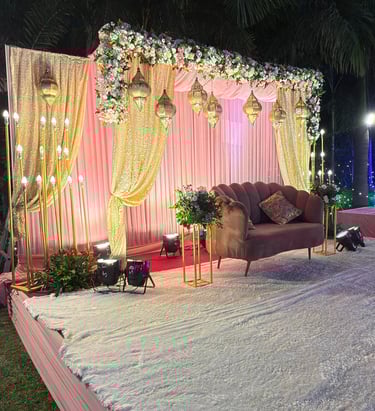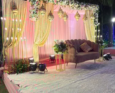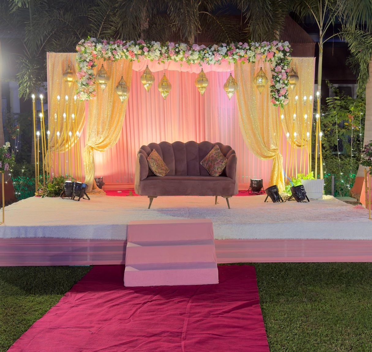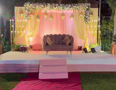 At DecorVista Events, we specialize in creating breathtaking wedding stage decorations that set the perfect ambiance for your special day. Serving Delhi, Noida, Gurugram, Gurgaon, Muzaffarnagar, and Jaipur, our expert team brings over 10 years of experience in crafting stunning, customized stages that leave lasting impressions.