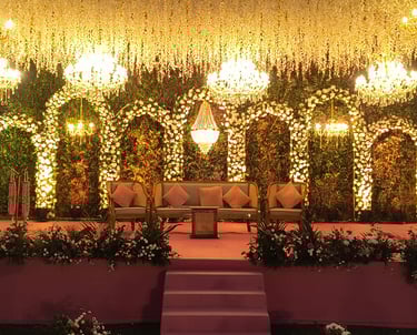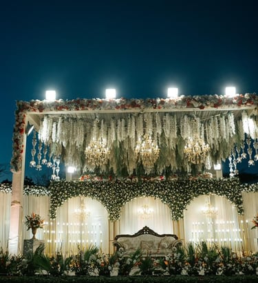Elegant Mandap Designs: Traditional to contemporary styles, tailored to your wedding theme and preferences