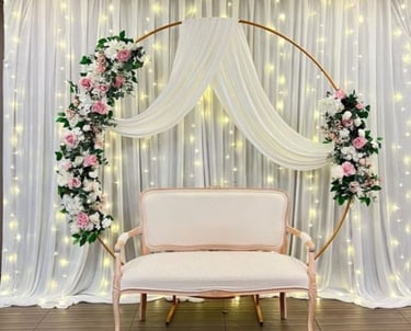 Fabric Draping & Decorations: Premium-quality drapes and elegant embellishments